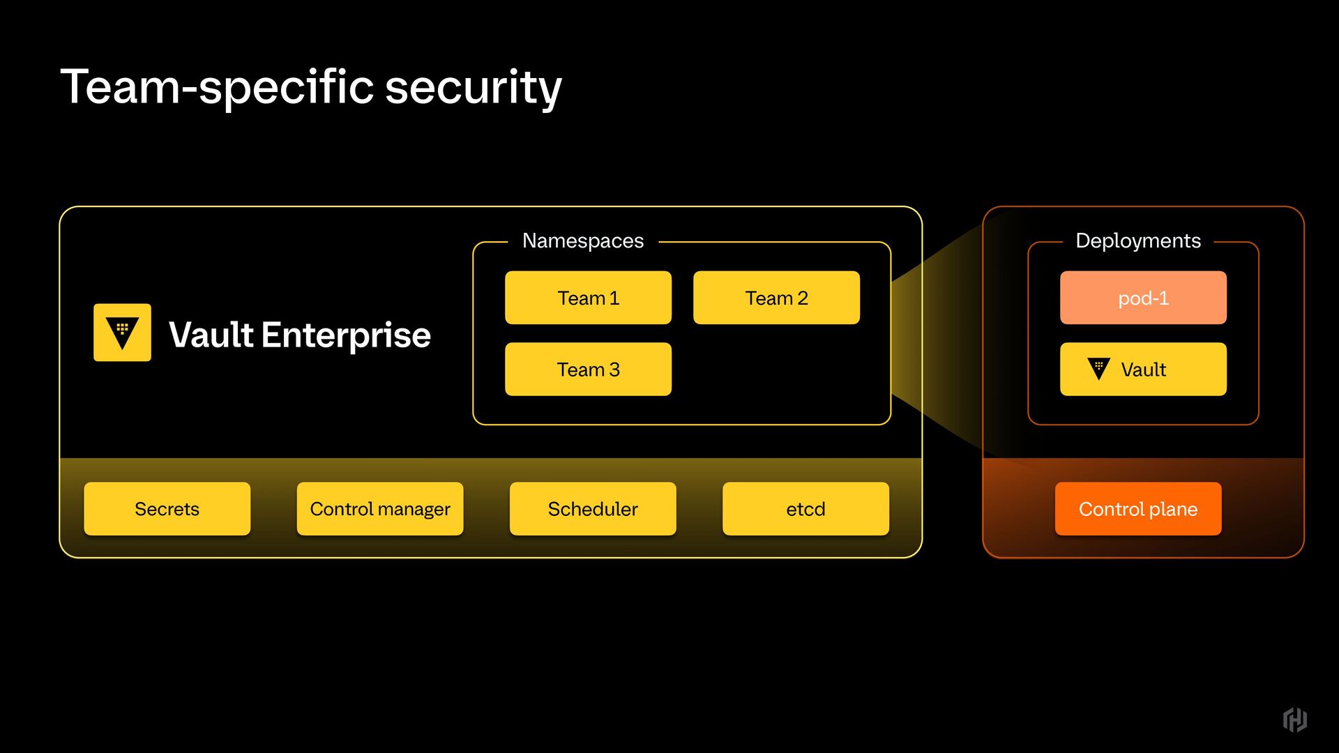 Team 3 Team 1 Control plane Deployments Vault pod-1