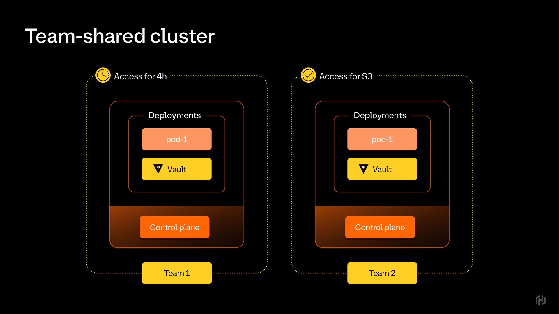 10. Team-shared cluster Control plane Deployments Vault pod-1 Access for 4h