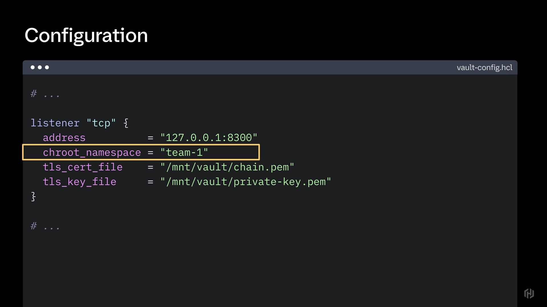 12. # ... listener "tcp" { address = "127.0.0.1:8300" chroot_namespace =