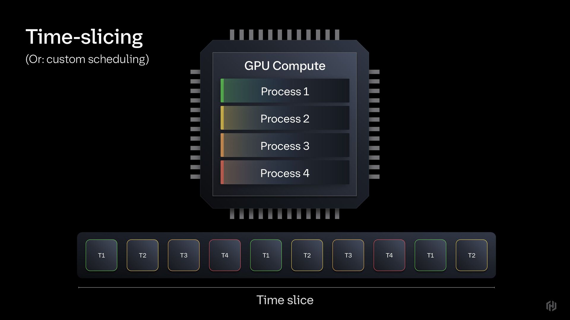 3. Time-slicing (Or: custom scheduling) GPU Compute Process 1 Process 2