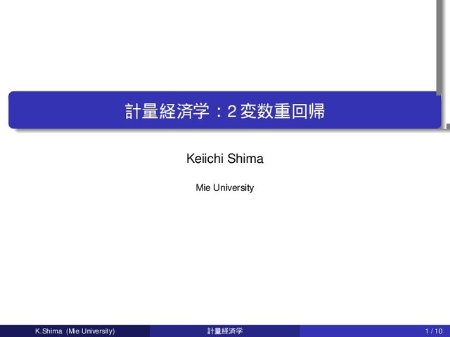 u2 j ) = σ2 Αͬͯɺୈ 3 ߲͸ E          ∑ i ∑ j ui ( xi − x ) uj ( wj − w )          = ∑ i ∑ j ( xi − x ) ( wj − w ) E ( uiuj ) = ∑ j ( xj − x ) ( wj − w ) E ( u2 j ) = Sxw σ2 K.Shima (Mie University) ܭྔܦࡁֶ 9 / 10