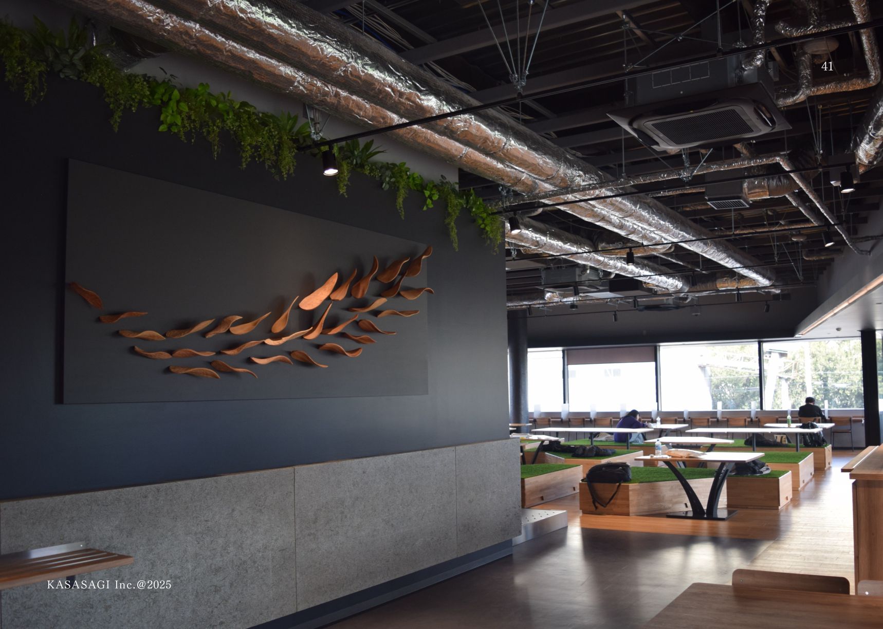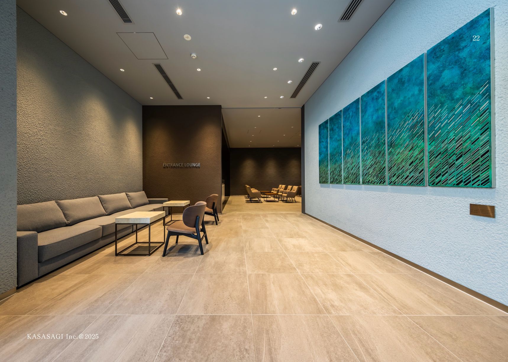 ͸ͳ͍ݸੑతͳ৭߹͍Λදݱ͢Δ͜ͱ͕Ͱ͖·͢ɻ ࡾҪෆಈ࢈ͷ෺ྲྀࢪઃ .'-1࠲ؒ ͷΤϯτϥϯεʹɺ஍Ҭͷ෩ܠͱ఻౷ͷҙঊΛ༥߹ͤͨ͞Ξʔ τΛઃܭ͠·ͨ͠ɻ ෺͔݅Β๬Ή୮୔ࢁͷࢁฒΈΛɺ఻౷໲༷ʮ໼ែʯΛݱ୅తʹ࠶ղऍ͠ͳ͕Βදݱɻ໼ែ͸ʮѱ͍ ΋ͷΛدͤ෇͚ͳ͍ʯͱ͞ΕΔԑىͷྑ͍໛༷Ͱ͋Γɺ͜ͷ৔ॴΛ๚ΕΔਓʑΛྗڧܴ͑͘ೖΕΔ γϯϘϧͱͳ͍ͬͯ·͢ɻ ·ͨɺ੖Εͨ೔ͷۭΛࢥΘͤΔ੨Λجௐͱ͠ɺࣄۀύʔτφʔͰ͋ΔࣳӜػցͷίʔϙϨʔτΧ ϥʔͰ΋͋Δ͜ͷ৭ΛɺۚଐͷࡺʹΑΔൃ৭Ͱදݱɻૉࡐͷ࣋ͭྗڧ͞ͱ઱΍͔ͳ৭࠼͕༥߹͠ɺ ๚ΕΔਓͷ໨ΛҾ͘ѹ౗తͳଘࡏײΛ์ͭΞʔτʹ࢓্͛·ͨ͠ɻ .'-1࠲ؒ $"4&456%:  07&37*&8