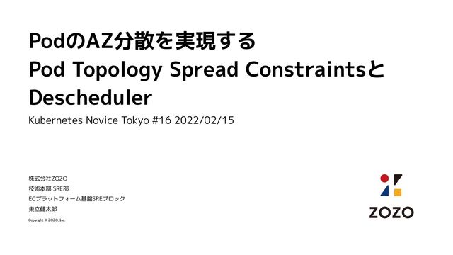 #16 2022/02/15 株式会社ZOZO 技術本部 SRE部 ECプラットフォーム基盤SREブロック 巣立健太郎 Copyright © ZOZO, Inc.