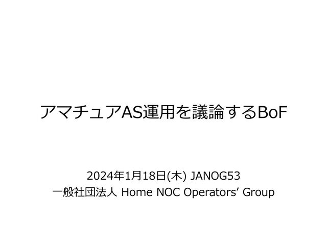 アマチュアAS運⽤を議論するBoF 2024年1⽉18⽇(⽊) JANOG53 ⼀般社団法⼈ Home NOC Operatorsʼ Group