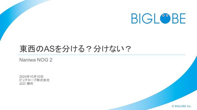 © BIGLOBE Inc. 東西のASを分ける?分けない? 2024年10月10日 ビッグローブ株式会社 山口 勝司 Naniwa NOG