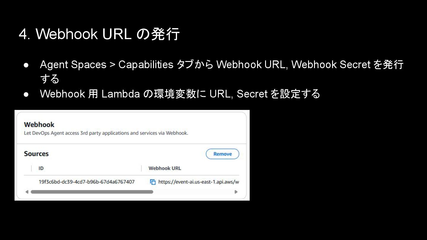 4. 4. Webhook URL の発行 • Agent Spaces > Capabilities タブから
