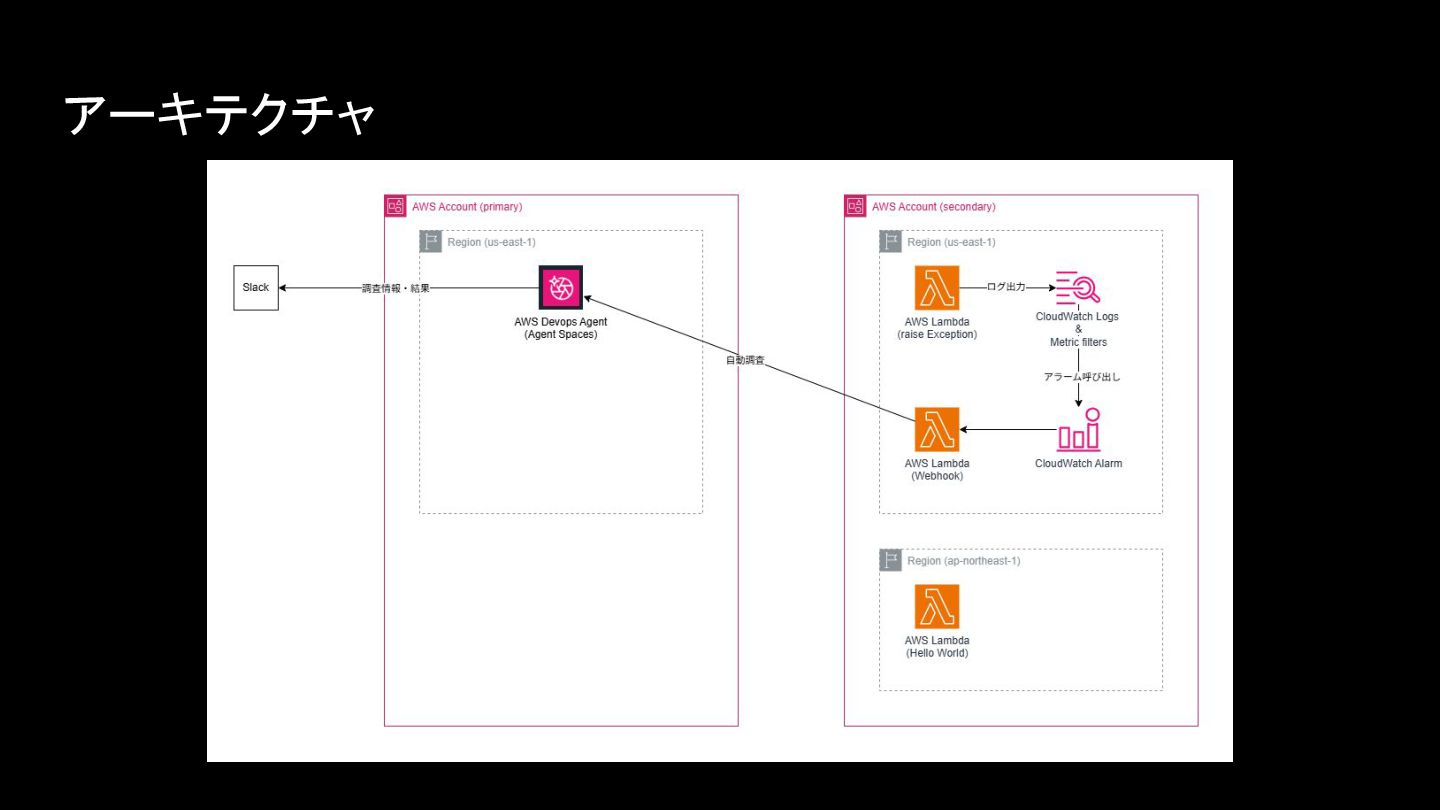 (Preview)のマルチアカウントアクセスをやってみた #AWSreInvent | DevelopersIO • AWS DevOps Agent で CloudWatch アラームをトリガーに自動インシデント調査 を行えるか試してみた #AWSreInvent | DevelopersIO • AWS DevOps Agent (Preview)のSlack連携をやってみた #AWSreInvent | DevelopersIO • CloudWatch Logsでの特定文字列の検知時の通知をメトリクスフィルターで実装し てみた | DevelopersIO