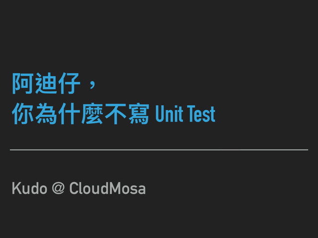 初入資訊界當個 RD,大家都在鼓吹寫 Unit Test,好似沒寫 Unit Test 就是一種罪惡 來自 RD 真實的分享,會讓大家對 Unit Test 的態度從喜歡到厭惡,然後到接受自我 寫 code 就像一盒巧克力,永遠不會知道會遇到什麼千奇百怪的需求 只好努力成為海賊王,成為最自由的碼農 要不要寫測試,自己決定