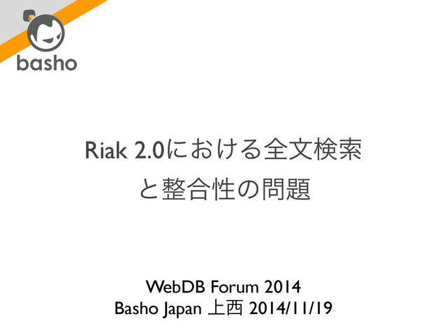 Riak 2.0ʹ͓͚Δશจݕࡧ ͱ߹ੑͷ WebDB Forum 2014 Basho Japan ্ 2014/11/19