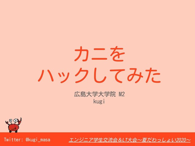 エンジニア学生交流会&LT大会~夏だわっしょい2020~ Twitter: @kugi_masa カニを ハックしてみた 広島大学大学院 M2 kugi
