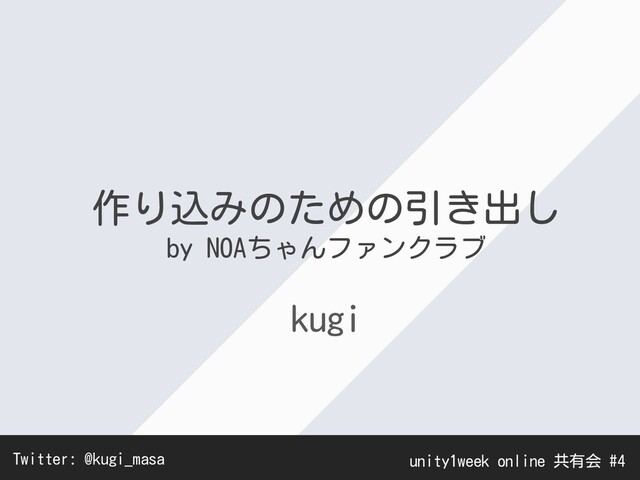 unity1week online 共有会 #4 Twitter: @kugi_masa 作り込みのための引き出し by NOAちゃんファンクラブ kugi