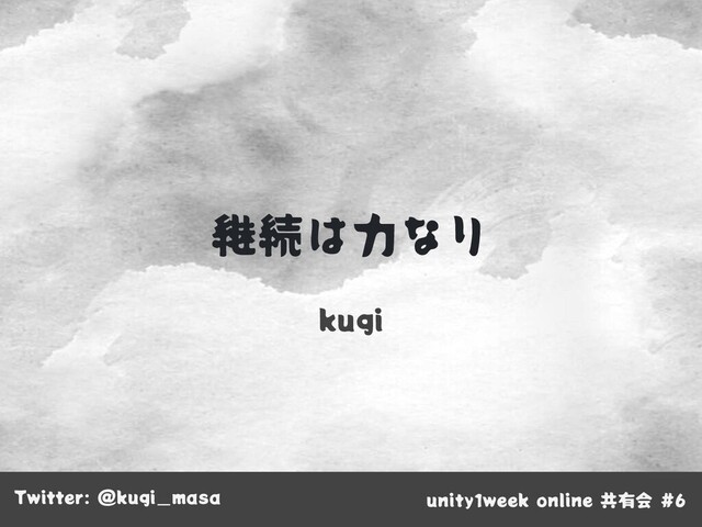 unity1week online 共有会 #6 Twitter: @kugi_masa 継続は力なり kugi
