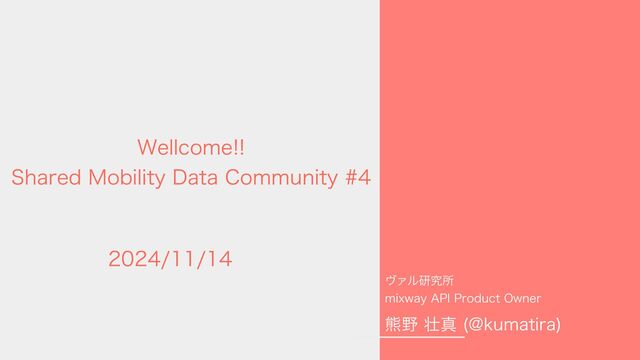2024/11/14に開催した「Shared Mobility Data Community #4」のオープニング資料です。