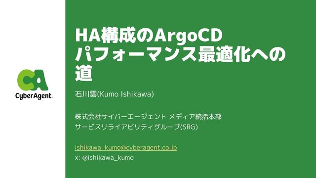 HA構成のArgoCD パフォーマンス最適化への 道 石川雲(Kumo Ishikawa) 株式会社サイバーエージェント メディア統括本部 サービスリライアビリティグループ(SRG)