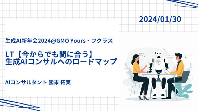 生成AI新年会2024@GMO Yours・フクラス LT【今からでも間に合う】 生成AIコンサルへのロードマップ AIコンサルタント 國末 拓実 2024/01/30