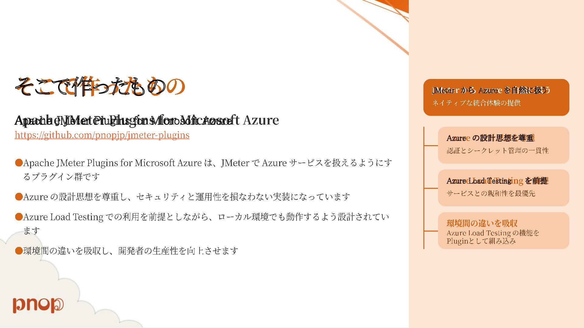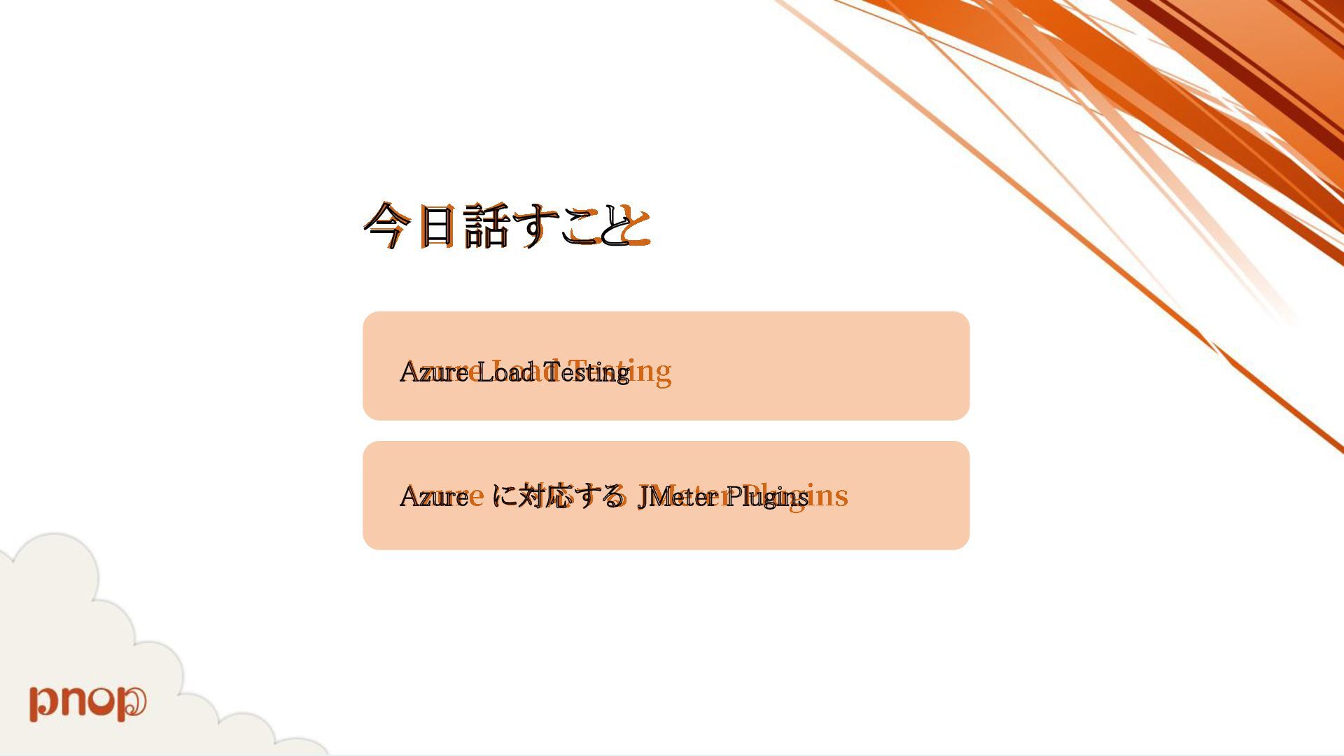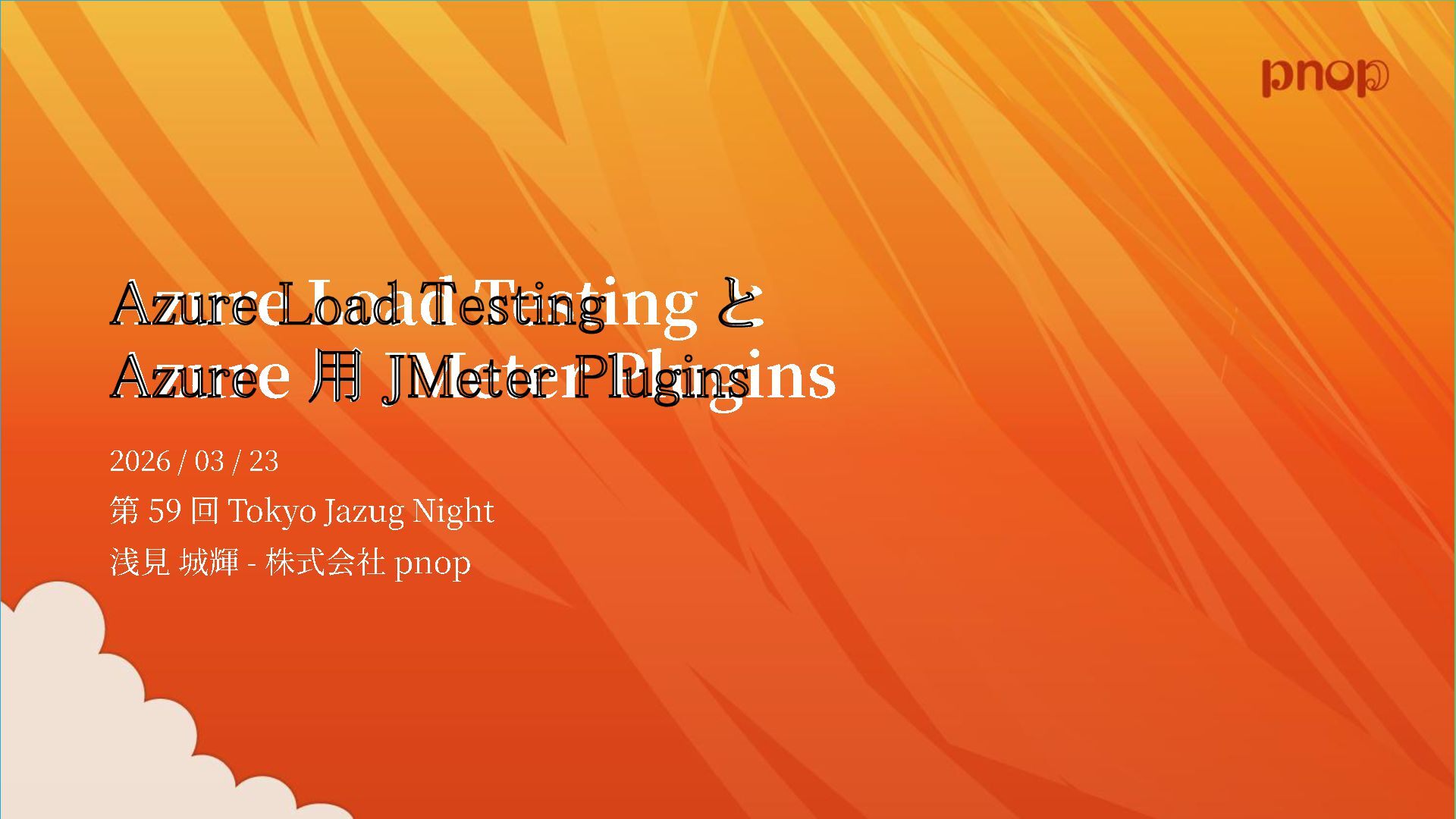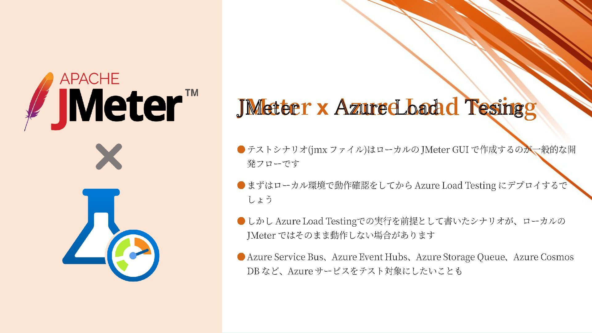 第59回 Tokyo Jazug Nightでのセッション資料です。 Azure Load Testingと、Azureに利用できるJMeterプラグインの紹介です。 (おそらく利用したフォントのせいでSpeakerDeckでの文字の表示が崩れていますが、ダウンロードしてAcrobat Readerで表示していただければ正常に見えるようになります。)