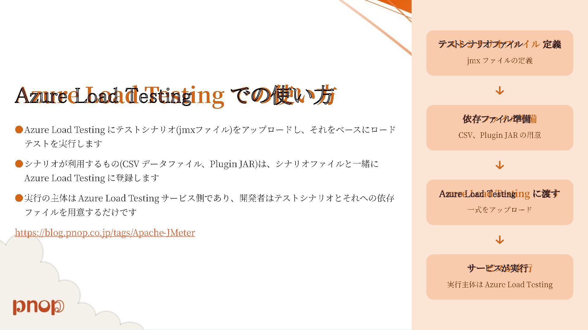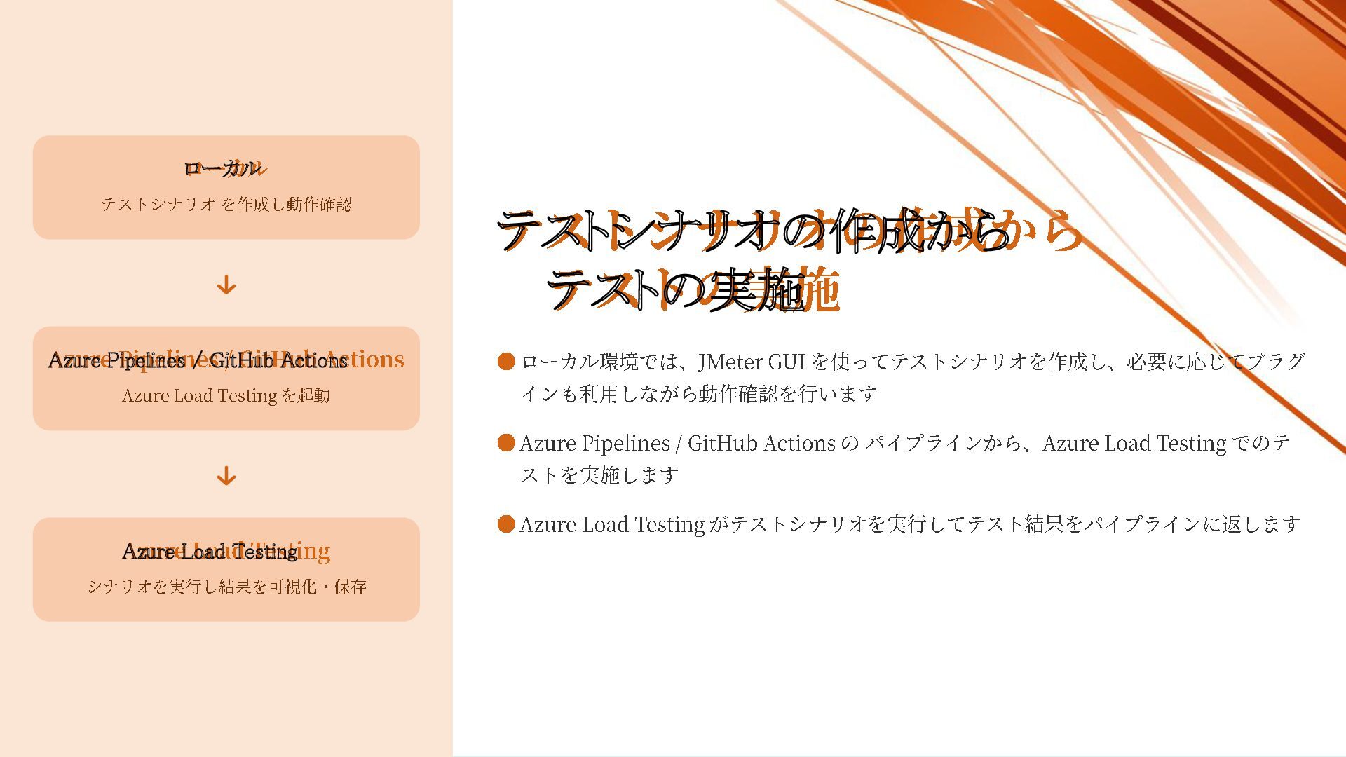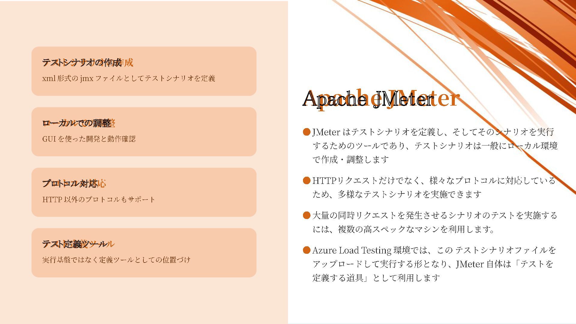 第59回 Tokyo Jazug Nightでのセッション資料です。 Azure Load Testingと、Azureに利用できるJMeterプラグインの紹介です。 (おそらく利用したフォントのせいでSpeakerDeckでの文字の表示が崩れていますが、ダウンロードしてAcrobat Readerで表示していただければ正常に見えるようになります。)