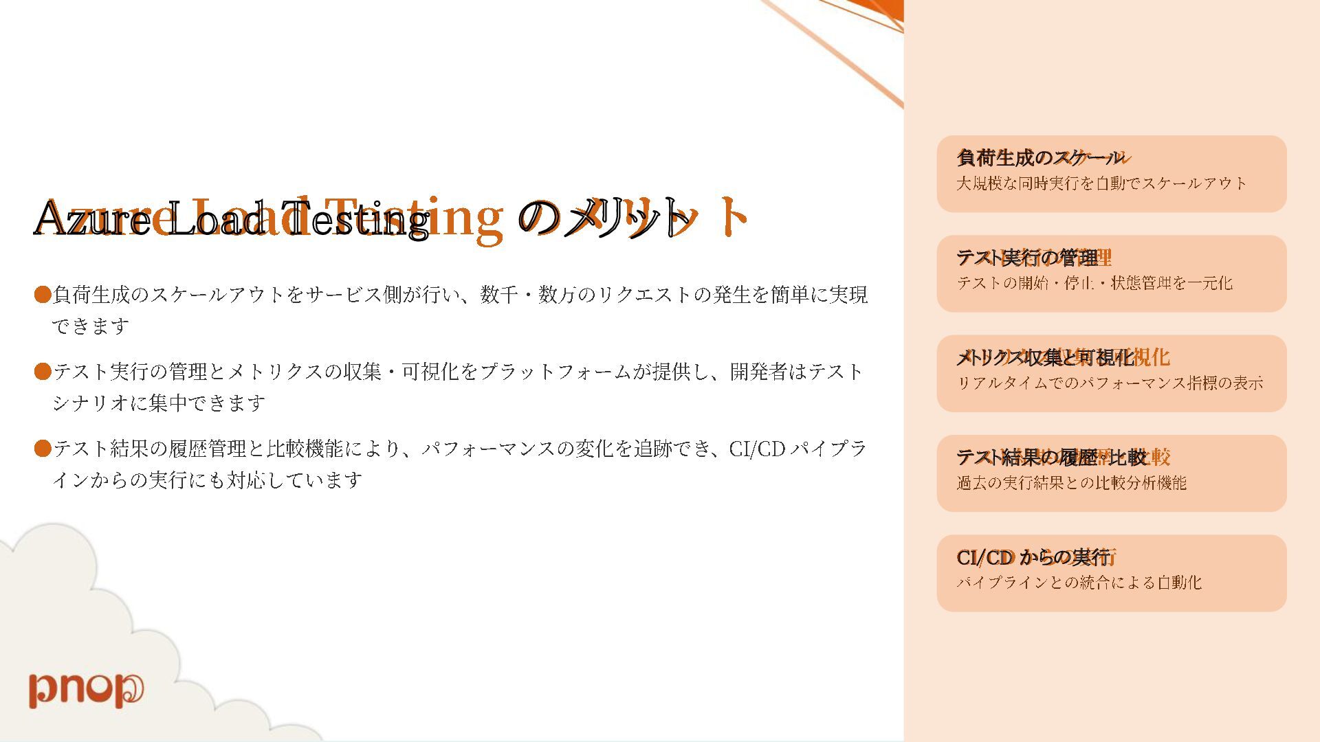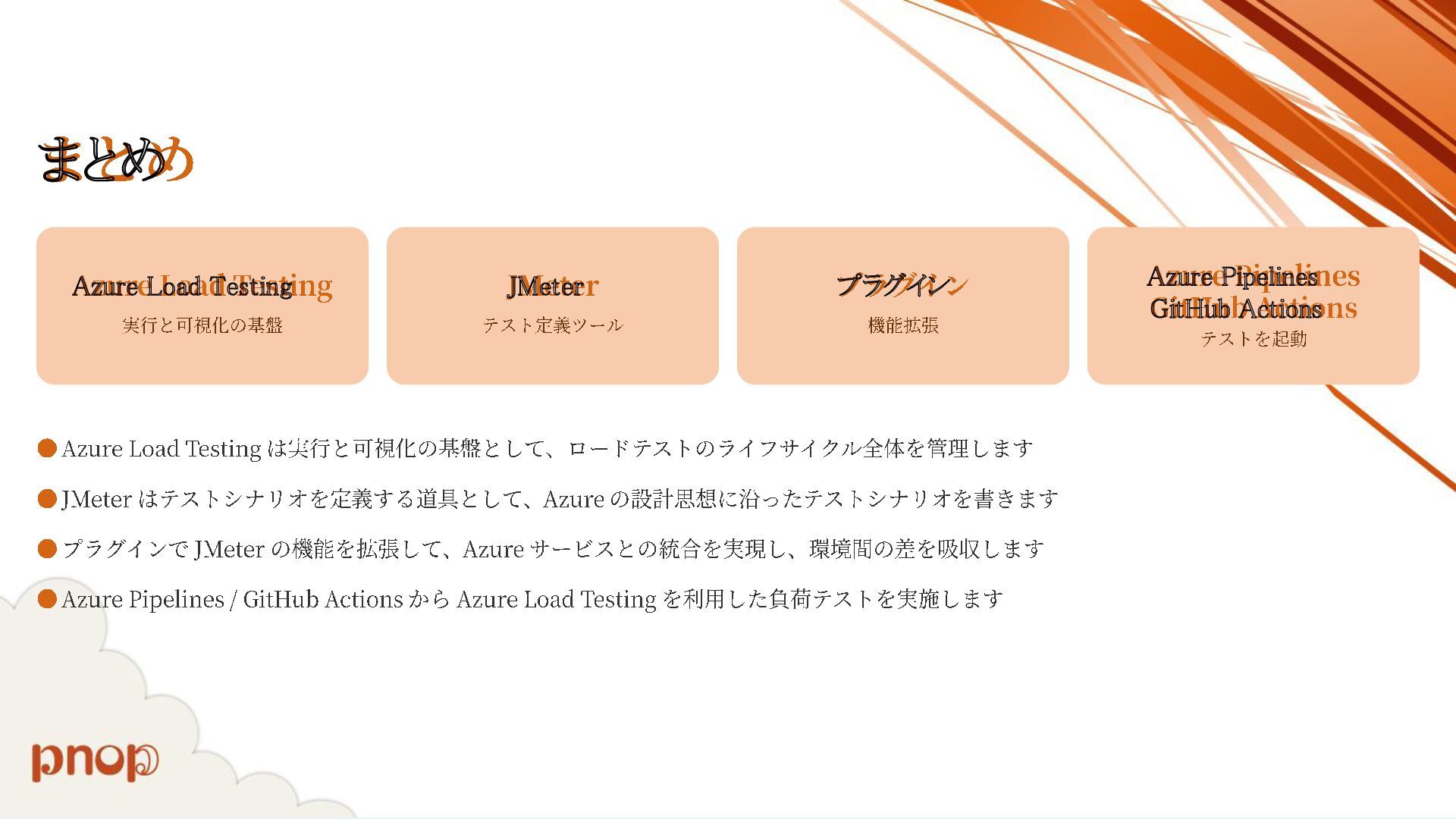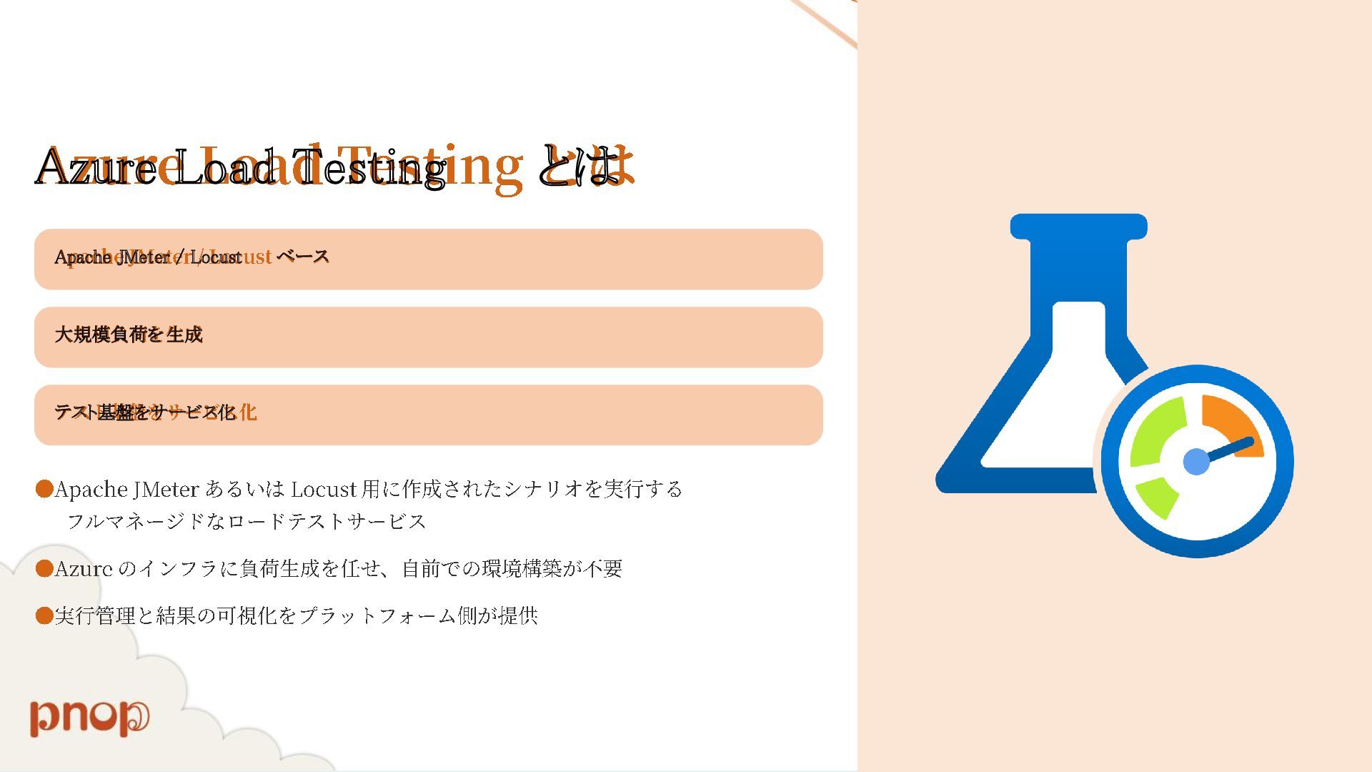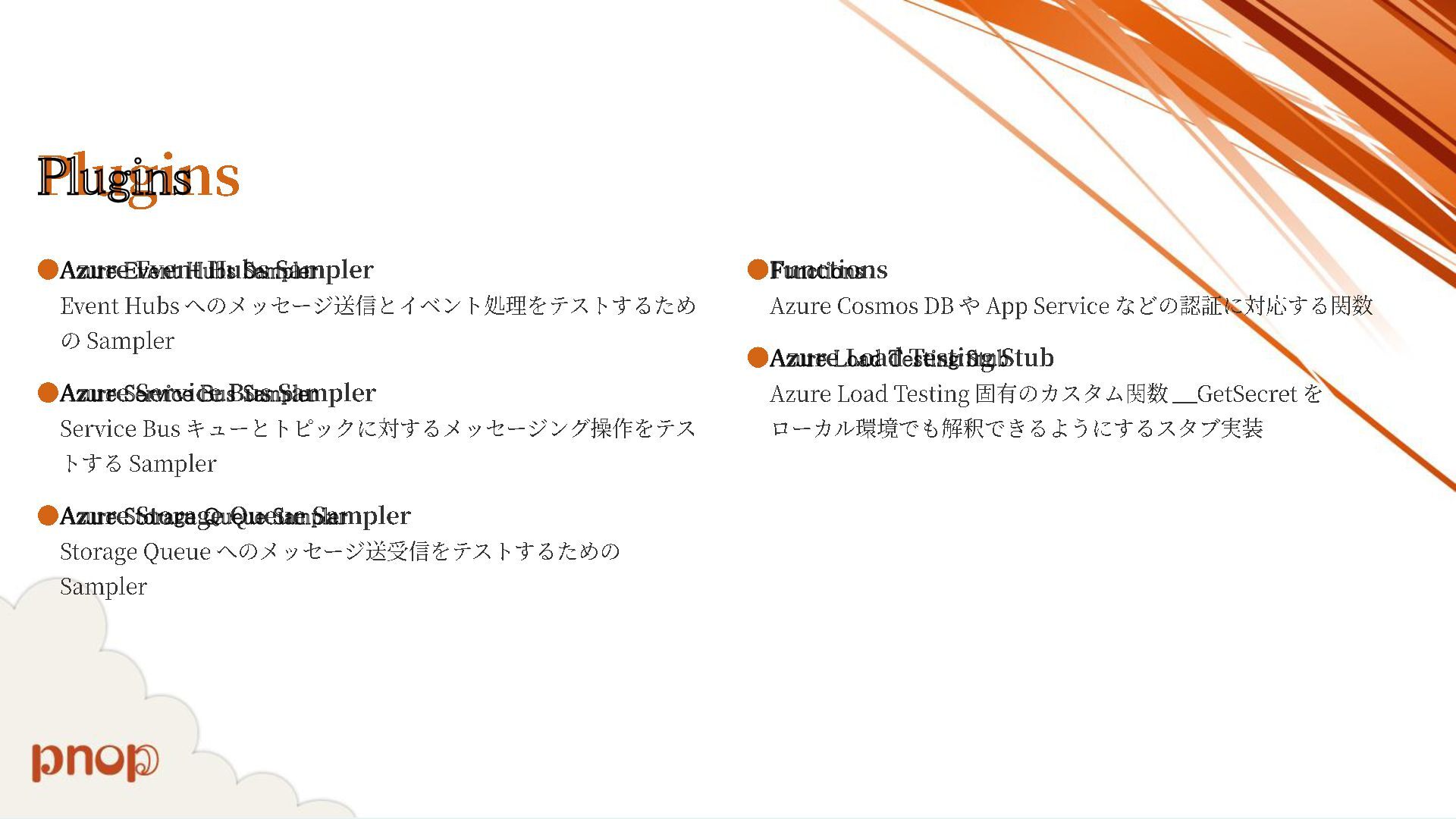 第59回 Tokyo Jazug Nightでのセッション資料です。 Azure Load Testingと、Azureに利用できるJMeterプラグインの紹介です。 (おそらく利用したフォントのせいでSpeakerDeckでの文字の表示が崩れていますが、ダウンロードしてAcrobat Readerで表示していただければ正常に見えるようになります。)