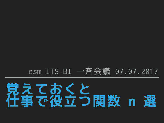 覚えておくと 仕事で役立つ関数 n 選 esm ITS-BI 一斉会議 07.07.2017