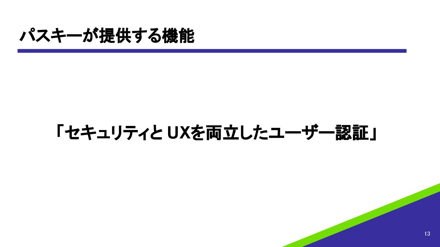パスキーが提供する機能 13 「セキュリティと UXを両立したユーザー認証」