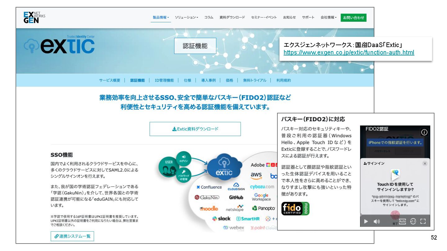 52 エクスジェンネットワークス:国産 IDaaS「Extic」 https://www.exgen.co.jp/extic/function-auth.html