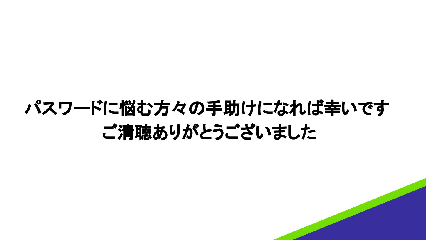 パスワードに悩む方々の手助けになれば幸いです ご清聴ありがとうございました