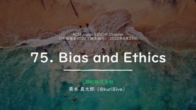CHI勉強会2022、75. Bias and Ethicsセッションの5本の論文紹介です。 各論文1枚・全体で3分の発表時間のため、かなり簡略化された資料となっています。 https://pgl.jp/seminars/chi2022/sessions/629c62a3a7ad45002cacafbf