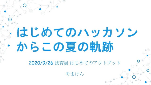 はじめてのハッカソン からこの夏の軌跡 2020/9/26 技育展 はじめてのアウトプット やまけん