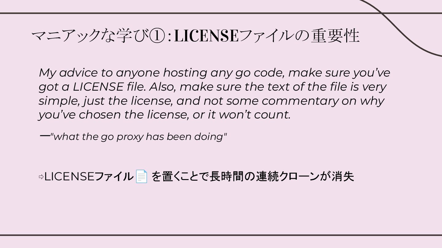 4. マニアックな学び①:LICENSEファイルの重要性 My advice to anyone hosting any go code, make