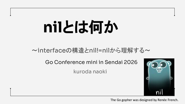 for a pointer, channel, func, interface, map, or slice type. ref: https://pkg.go.dev/builtin#nil これらに共通するのは「内部表現にポインタを含む型」であること。 structやarrayにnilは使えない。 The Go gopher was designed by Renée French.