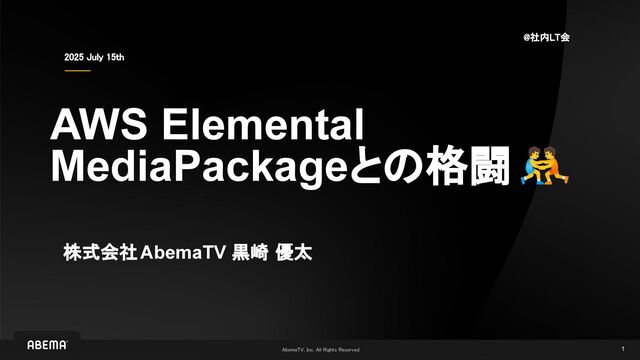 1 AWS Elemental MediaPackageとの格闘🤼 2025 July 15th 株式会社AbemaTV 黒崎 優太 @社内LT会