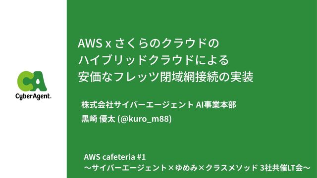 AWS cafeteria #1 〜サイバーエージェント×ゆめみ×クラスメソッド 3社共催LT会〜 で発表した資料です。 https://cyberagent.connpass.com/event/303690/