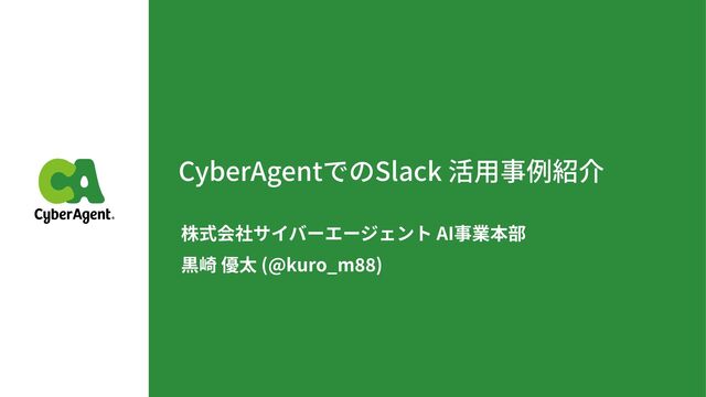 CyberAgentでのSlack 活⽤事例紹介 株式会社サイバーエージェント AI事業本部 黒崎 優太 (@kuro_m )