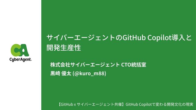 黒崎 優太 (@kuro_m 88 ) 【GitHub x サイバーエージェント共催】GitHub Copilotで変わる開発⽂化の現実