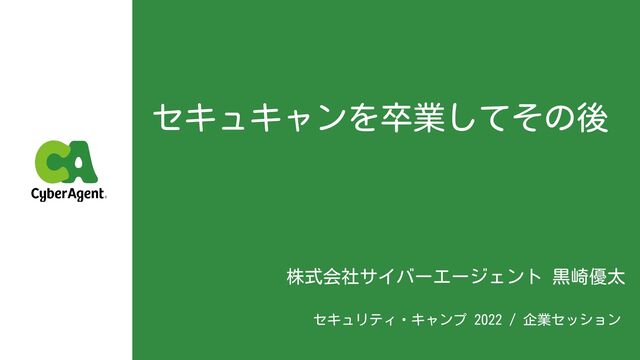 セキュキャンを卒業してその後 株式会社サイバーエージェント 黒崎優太 セキュリティ・キャンプ 2022 / 企業セッション