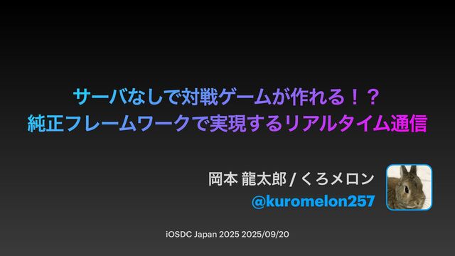 このトークでは、私が個人開発したSpriteKit製の対戦アクションゲームを題材に、Apple純正技術を活用したリアルタイム同期の構成や設計の工夫を紹介します。