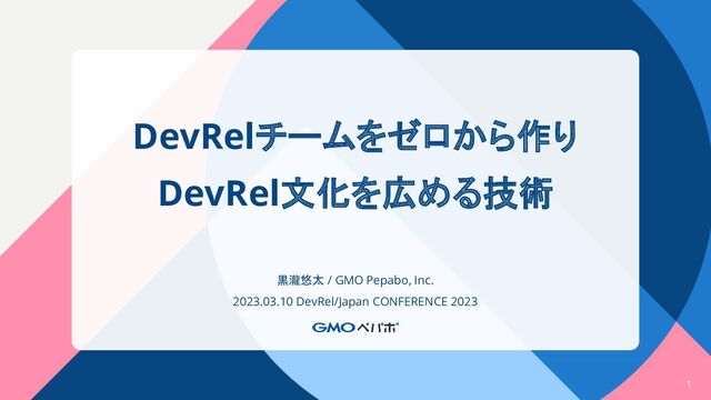 DevRelチームをゼロから作り DevRel文化を広める技術 黒瀧悠太 / GMO Pepabo, Inc. 2023.03.10 DevRel/Japan CONFERENCE