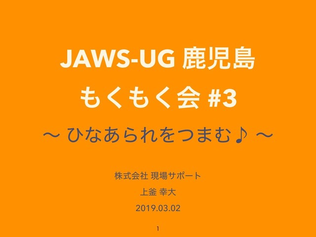 —— • —— • ͓ئ͍ • ※γΣΞ (SNSɺϒϩάͳͲ)ɺΑΖ͓͘͠ئ͍͠·͢ɻɹ˞TwitterŰŕŢœŦŞƄ : #jawskgsm • ※·ͨɺΑΖ͚͠Ε FB ͳͲʹࠓͷ͘͘Λߘ͚ͯ͠Δͱॿ͔Γ·͢ɻ • ※ଞɺԿ͔Γ͍ͨ͜ͱ͕͋ΕɺͲ͠Ͳ͠͝ఏҊԼ͍͞ɻ • 20190302_JAWS-UGࣛࣇౡ͘͘ձ_#3 - Ξϯέʔτ - Google ϑΥʔϜ • ؗҊ / ઃඋҊ • τΠϨ : 2F,3Fʹஉੑ/ঁੑτΠϨ͕Ұͭͣͭɹ˞֊ஈ߱Γͯࠨଆ • ٤Ԏॴ : ֎֊ஈͷགྷΓɻ1F(3F)ʹփࡼɹ˞Րͷෆ࢝ʹ͝ҙΛ!! • ŜŲŐţųƅŖţ (4F) : ҿ৯ࣗ͝༝ʹͲ͏ͧ̇ɹ˞ҿྉɺ՛ࢠ༗Γɻ(༗ྉɺ͓Γແ͠ɻ) • ແઢ LAN : ΧʔυελϯυΛ͝ࢀরԼ͍͞ɻ • ͦͷଞඋ : ిݯɺϚΠΫɺεϐʔΧʔɺϓϩδΣΫλɺϗϫΠτϘʔυɹ˞ࣗ͝༝ʹͲ͏ͧ̇