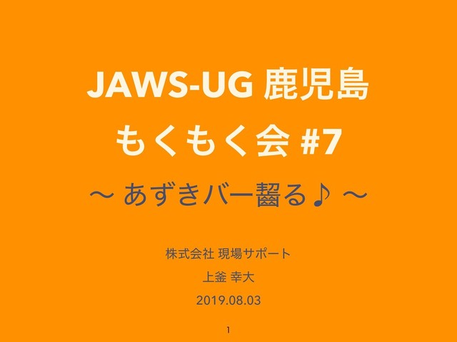 —— • —— • ͓ئ͍ • ※γΣΞ (SNSɺϒϩάͳͲ)ɺΑΖ͓͘͠ئ͍͠·͢ɻɹ˞TwitterŰŕŢœŦŞƄ : #jawskgsm • ※·ͨɺΑΖ͚͠Ε FB ͳͲʹࠓͷ͘͘Λߘ͚ͯ͠Δͱॿ͔Γ·͢ɻ • ※ଞɺԿ͔Γ͍ͨ͜ͱ͕͋ΕɺͲ͠Ͳ͠͝ఏҊԼ͍͞ɻ • [2019.08.03]JAWS-UGࣛࣇౡ͘͘ձ#7 - Ξϯέʔτ • ؗҊ / ઃඋҊ • τΠϨ : 2F,3Fʹஉੑ/ঁੑτΠϨ͕Ұͭͣͭɹ˞֊ஈ߱Γͯࠨଆ • ٤Ԏॴ : ֎֊ஈͷགྷΓɻ1F(3F)ʹփࡼɹ˞Րͷෆ࢝ʹ͝ҙΛ!! • ŜŲŐţųƅŖţ (4F) : ҿ৯ࣗ͝༝ʹͲ͏ͧ̇ɹ˞ҿྉɺ՛ࢠ༗Γɻ(༗ྉɺ͓Γແ͠ɻ) • ແઢ LAN : ΧʔυελϯυΛ͝ࢀরԼ͍͞ɻ • ͦͷଞඋ : ిݯɺϚΠΫɺεϐʔΧʔɺϓϩδΣΫλɺϗϫΠτϘʔυɹ˞ࣗ͝༝ʹͲ͏ͧ̇