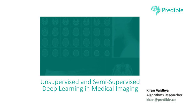 Availability of labelled data for supervised learning is a major problem for narrow AI in current day industry. In imaging, the task of semantic segmentation (pixel-level labelling) requires humans to provide strong pixel-level annotations for millions of images and is difficult when compared to the task of generating weak image-level labels. Unsupervised representation learning along with semi-supervised classification is essential when strong annotations are hard to come by. This talk will introduce you to the techniques available in unsupervised learning and semi-supervised learning with specific focus on brain tumor segmentation from MRI using Stacked De-noising Auto-Encoders [(SDAEs)](http://www.jmlr.org/papers/volume11/vincent10a/vincent10a.pdf), which achieved competitive results in comparison with purely supervised Convolutional Neural Networks [(CNNs)](http://cs231n.github.io/convolutional-networks/), and highlight recent breakthroughs in AI with Generative Adversarial Networks [(GANs)](http://blog.aylien.com/introduction-generative-adversarial-networks-code-tensorflow/) for computer vision. Although the focus is on medical imaging, the techniques will be presented in a domain agnostic manner and can be easily translated for other sectors of deep learning.
