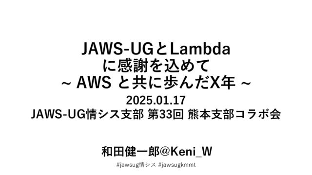 #jawsug情シス #jawsugkmmt 2025.01.17 JAWS-UG情シス支部 第33回 熊本支部コラボ会 和田健一郎@Keni_W JAWS-UGとLambda に感謝を込めて ~