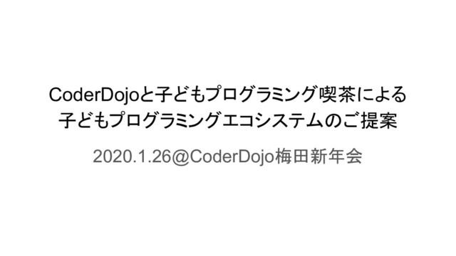 2020年1月26日に開催されたCoderDojo梅田新年会のLTタイムでお話した「CoderDojoと子どもプログラミング喫茶による子どもプログラミングエコシステムのご提案」のスライドです。当日使用したものから加筆しております。