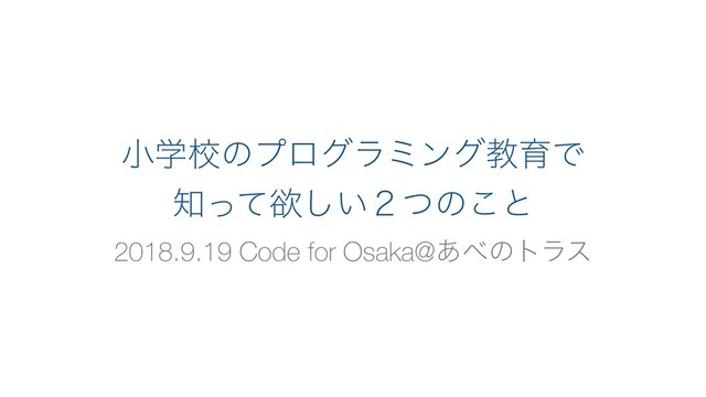 2018年9月19日に開催されたCode for Osaka定例会でお話しした内容です。 前半は2020年から始まる小学校でのプログラミング教育必修化の内容、後半は私が「小学校の」プログラミングを通して気づいて欲しいことについてお話ししました。