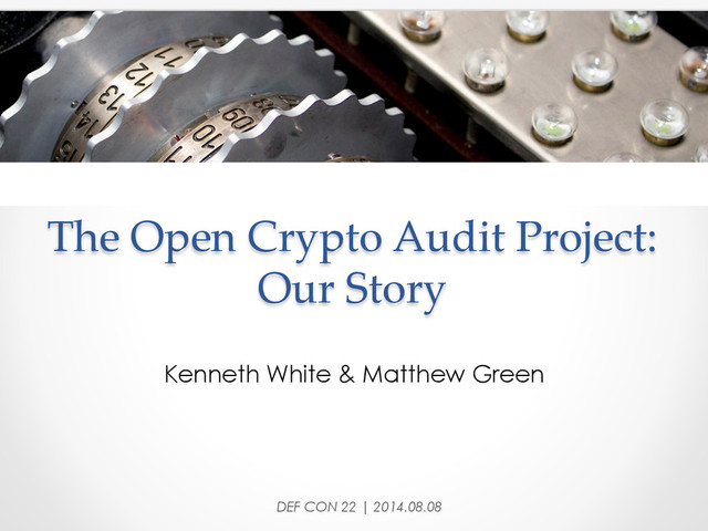 Nate Lawson o Runa Sandvik o Bruce Schneier o Thomas Ptacek o Jim Denaro o Moxie Marlinspike o Trevor Perrin o Joseph Lorenzo Hall DEF CON 22 | 2014.08.08