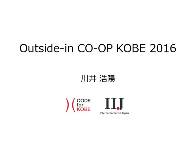 コープこうべのアイディアソン「Outside-in CO-OP KOBE 2016」での発表資料です。議論の前の情報前振りとしてまとめました。