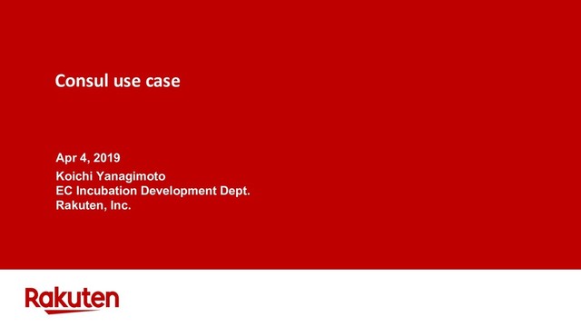 Consul use case Apr 4, 2019 Koichi Yanagimoto EC Incubation