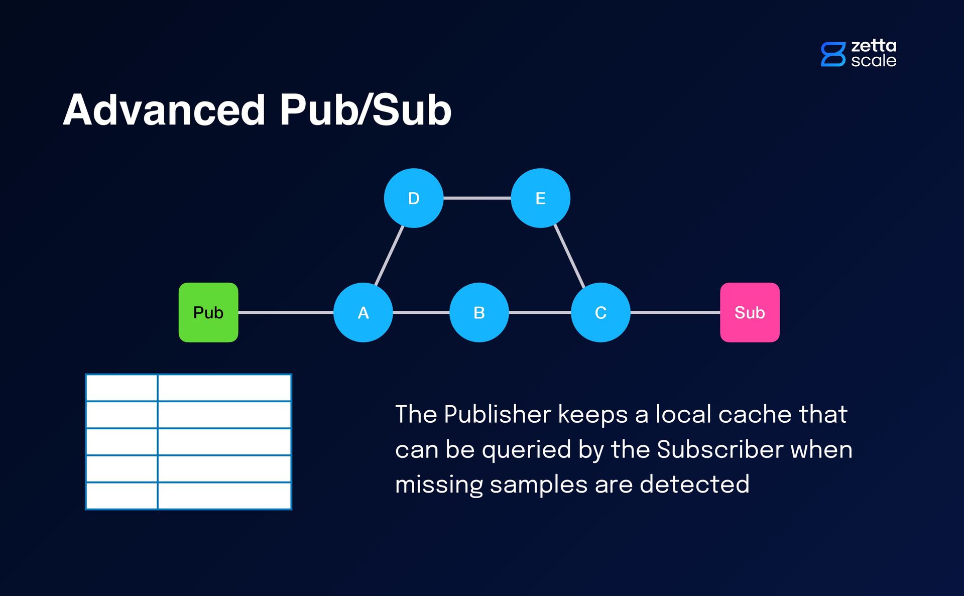 19. Advanced Pub/Sub The Publisher keeps a local cache that can