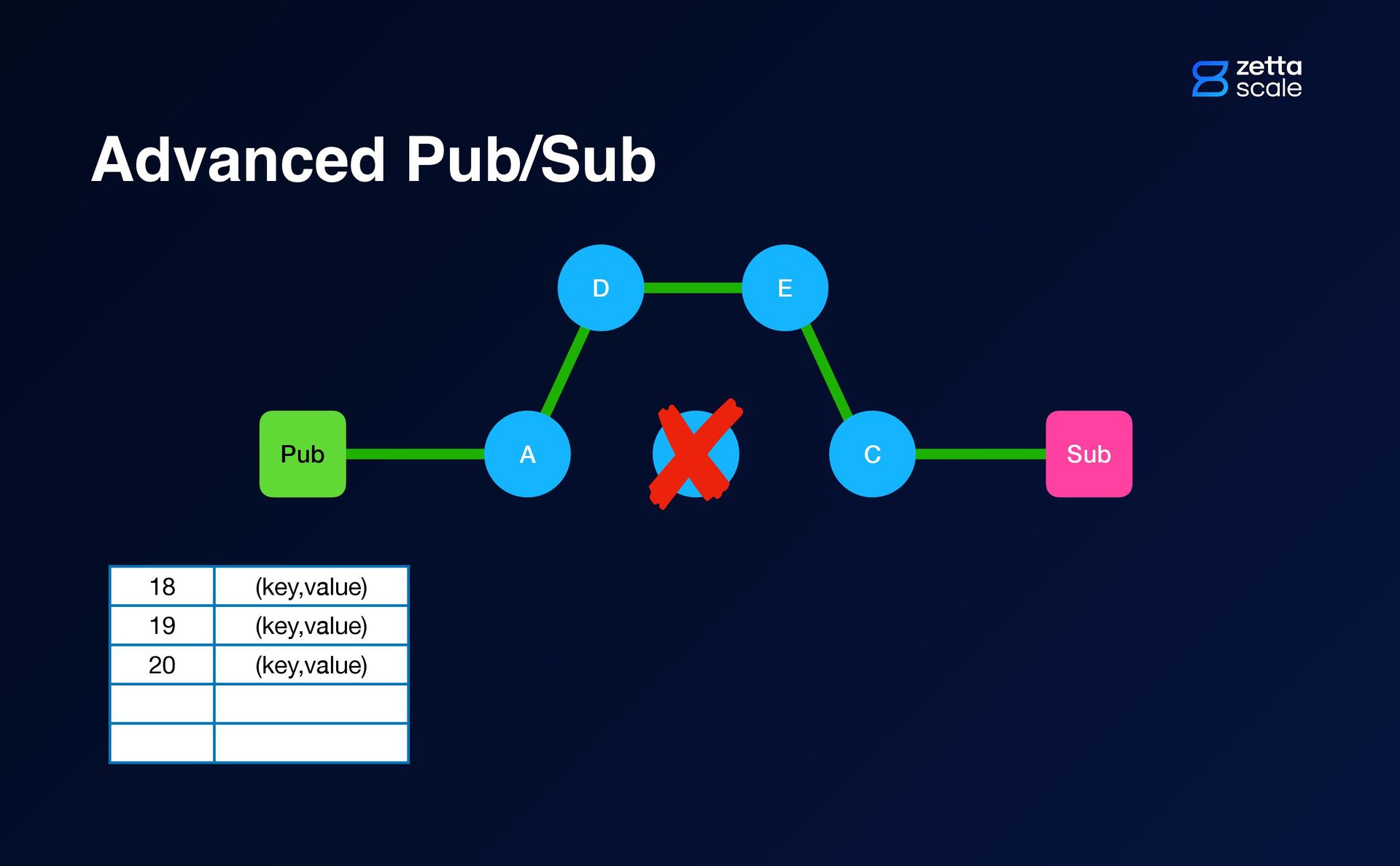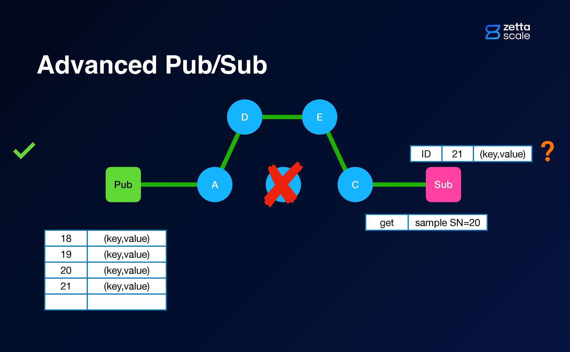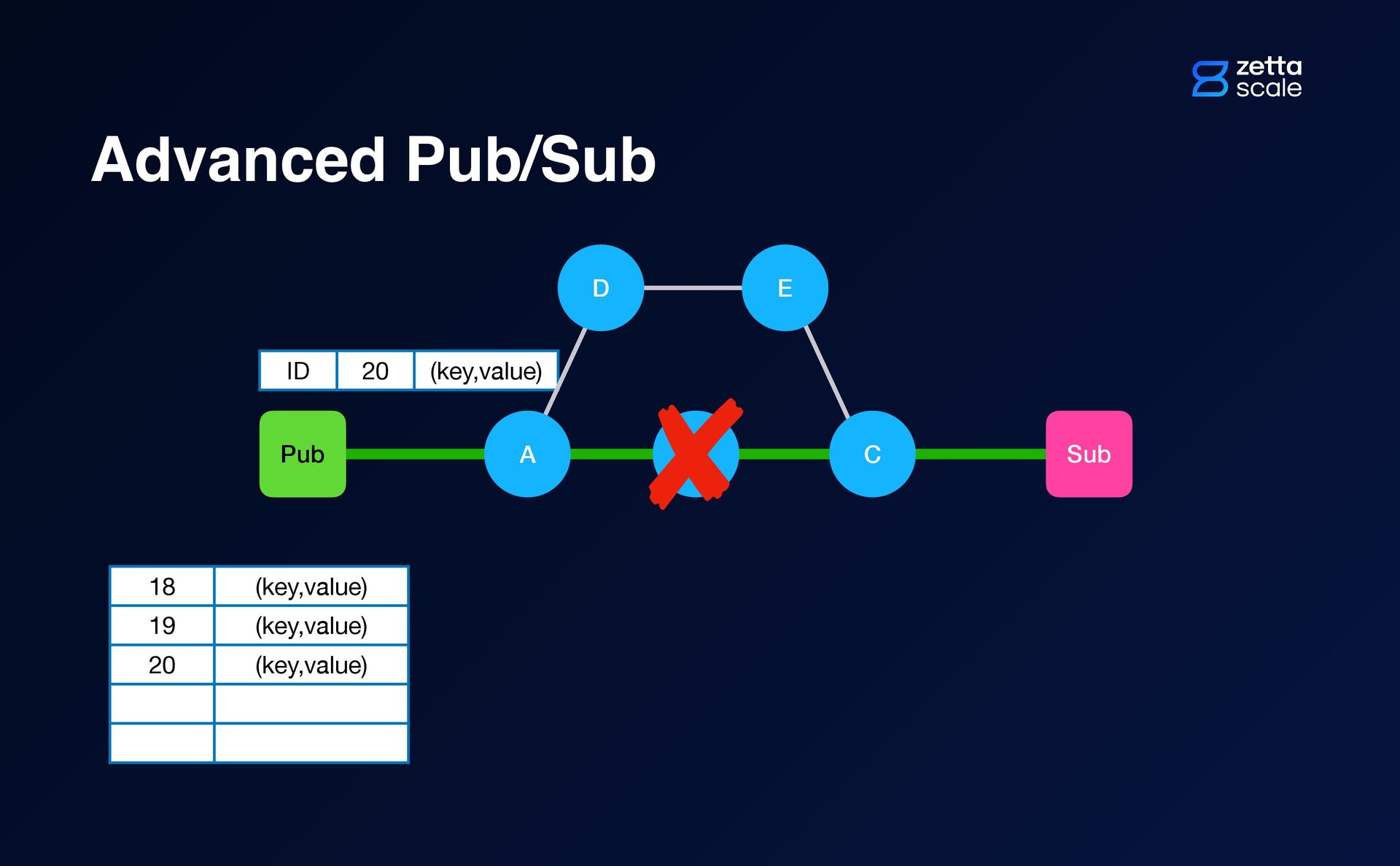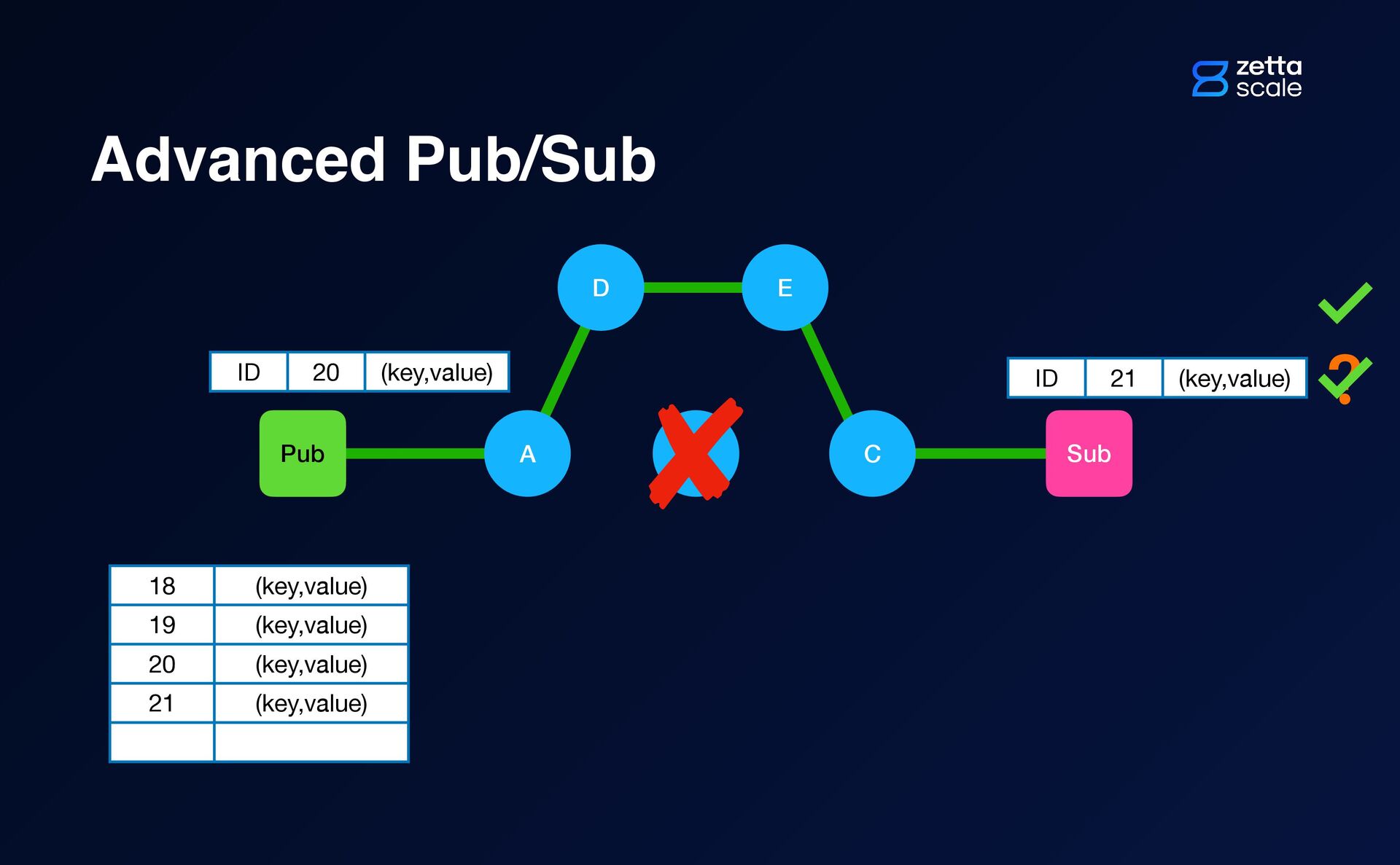 B Pub Sub D E A C ID 20 (key,value) ? ID 21 (key,value)