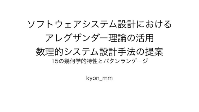 ソフトウェアシステム設計における アレグザンダー理論の活用 数理的システム設計手法の提案 #a...