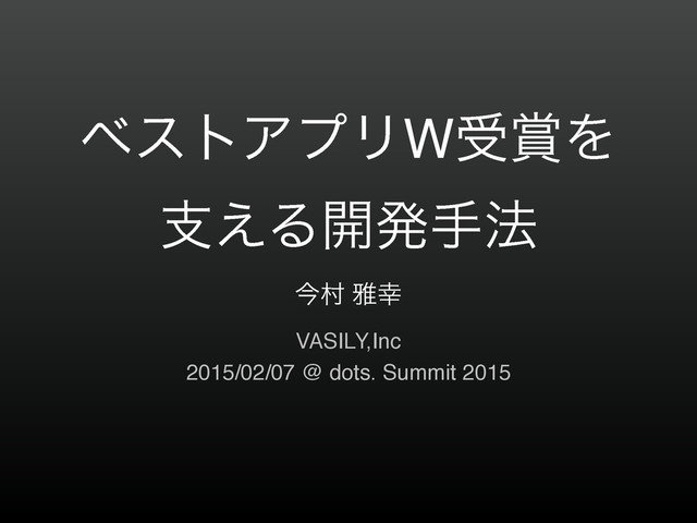 ϕετΞϓϦWडΛ ࢧ͑Δ։ൃख๏ ࠓଜ խ VASILY,Inc 2015/02/07 @ dots. Summit 2015